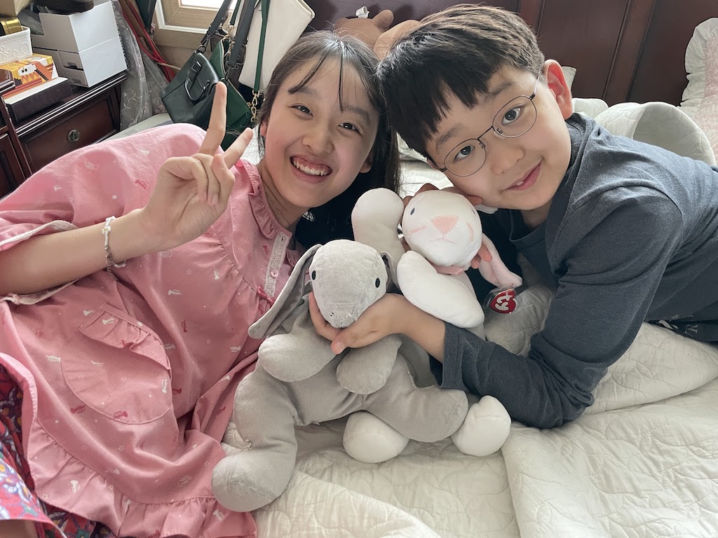 며칠 후, 바다를 건너 도착한 토끼 인형!! 아이들은 완전 반가워했다. 이 모델은 까만 눈과 파란 눈이 있는데, 새로 산 것은 받아보니 파란 눈이다. 눈 색깔도 기존 토끼 인형처럼 까만색이었으면 더 좋았을텐데 어쩔 수가 없다.