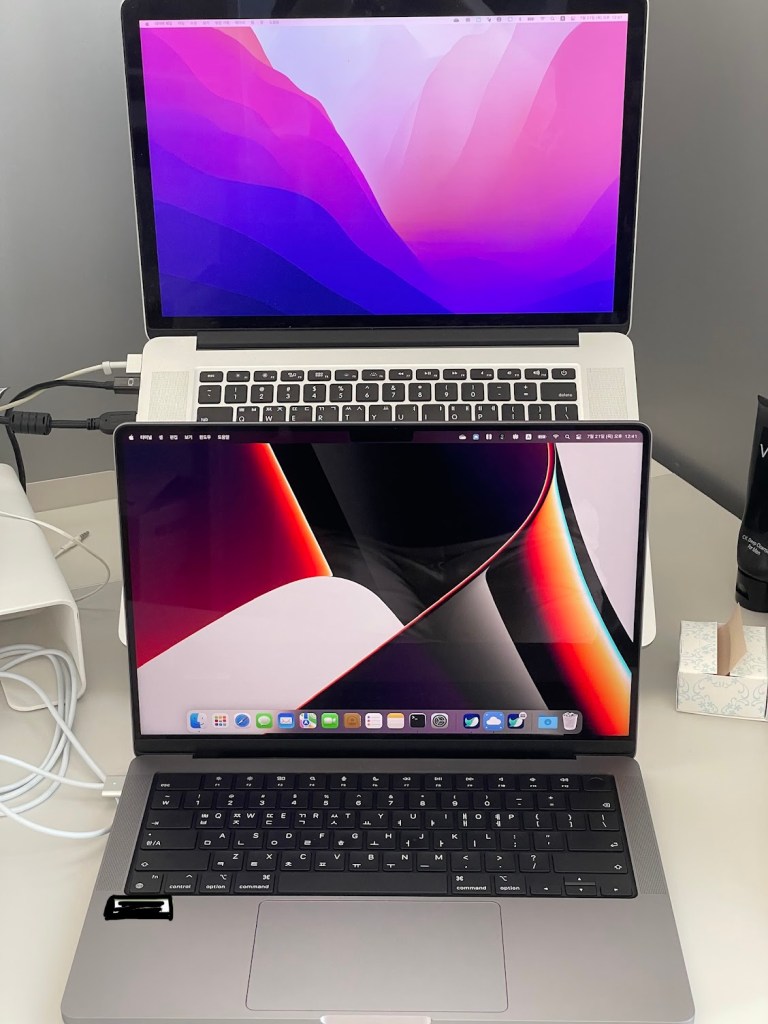 그래서 몇 달 전에 새로운 맥북프로를 주문했다. 그리고 이 신형 맥북프로(M1 Pro, 14인치)가 도착해서 6년 반된 15인치 맥북프로는 곧 퇴역할 예정이다. 새 맥북프로의 디자인은 과거 타이북이 떠오르는 각지고 단단한 느낌을 준다. 14인치와 16인치 사이에서 한참 고민하다가 14인치를 선택했는데 적당한 무게와 크기가 마음에 든다. 출시 당시 논란이었던 화면 상단 중앙에 있는 노치는 전혀 신경 쓰이지 않는다. 키보드 감촉도 좋다. 다만 F와 J에 표시돼 있는 양각이 일자가 아닌 점이라 키보드 기준 위치 잡는데 좀 익숙해져야할 것 같다. 큼직한 지문인식 센서도 마음에 든다. 내 일곱번째 맥이다.