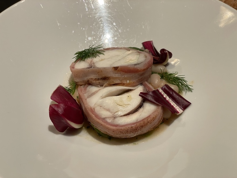 - 베이컨으로 싼 로스팅한 아귀와 스튜로 끓인 콩