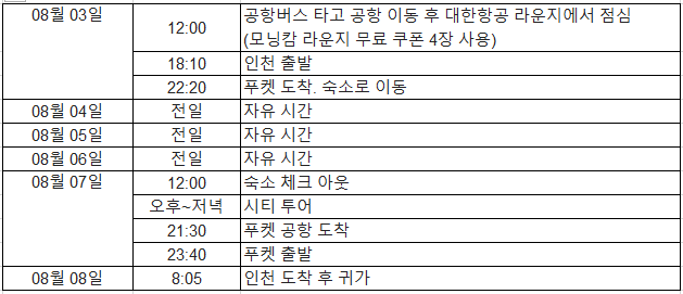 일정은 심플했다. 숙소에서 계속 지내다가 마지막 날에 체크 아웃 한 후에 시티투어 차량 타고 푸켓 섬을 돌아다니는 일정.