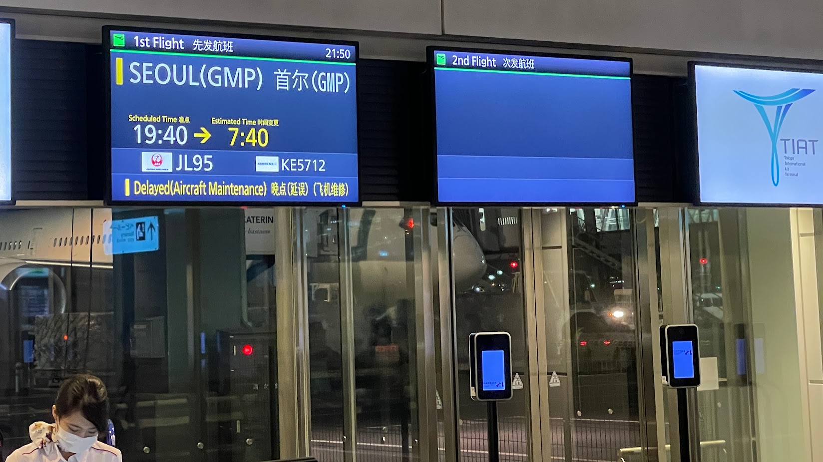 내가 예약한 항공편은 일본항공(JAL) 095편으로 저녁 7시 40분에 이륙하는 하네다 발 김포 행 비행기. 평소처럼 저녁 6시 쯤 하네다 공항 3터미널에 도착했다. 거의 매달 오는 도쿄 출장이라 익숙하게 짐 부치고, 보안 검색 받고, 면세점에서 과자 사고, 비지니스 라운지 가서 간단히 식사를 한 후 탑승이 시작되는 7시 10분에 맞춰 동료들과 함께 게이트로 향했다.