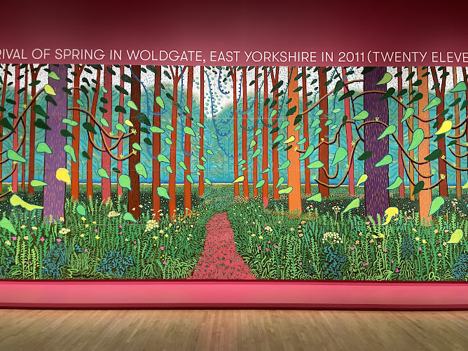 그리고 데이빗 호크니 전. 1937년 생인 호크니가 런던, LA, 고향인 브랫포드, 노르망디로 옮겨가며 그린 작품들을 시간순으로 전시했다. 화사한 색감의 작품들도 많고 재채있는 내용의 작품들이라 내 마음에 들었다. 내가 진심으로 감탄한건 아이패드로 그린 최근의 작품들. 아크릴 물감을 쓰거나 판화로 찍은 건 내가 근접하기도 어려운 매체들이라 훌륭하다 정도로만 생각했지만 아이패드로 그린 건 나도 할 수 있을 법한 내용이라 더 놀라웠던 것. 아이패드로 대충 그린 듯 하지만 색상이 환상적인 작품들을 보면서 방구석에서 유튜브나 보여주는 내 아이패드가 불쌍해졌다.
