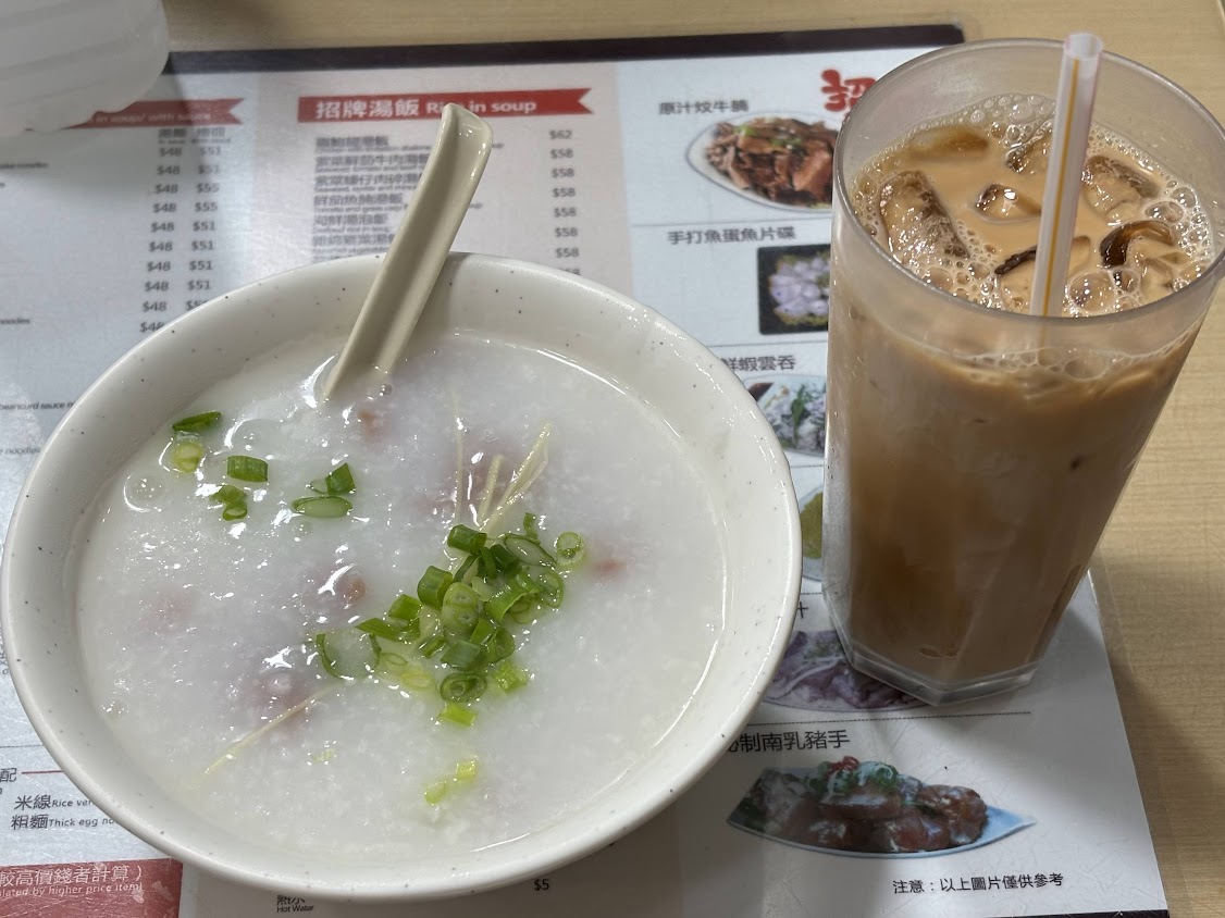침사추이 Chiu Fat Restaurant: 아침 식사 위해 찾은 YMCA근처 죽집으로 소고기 죽이 맛있었다. 그런데 소고기 죽+밀크티가 분명 55홍딸인데 59HKD를 받더라고요 흠…