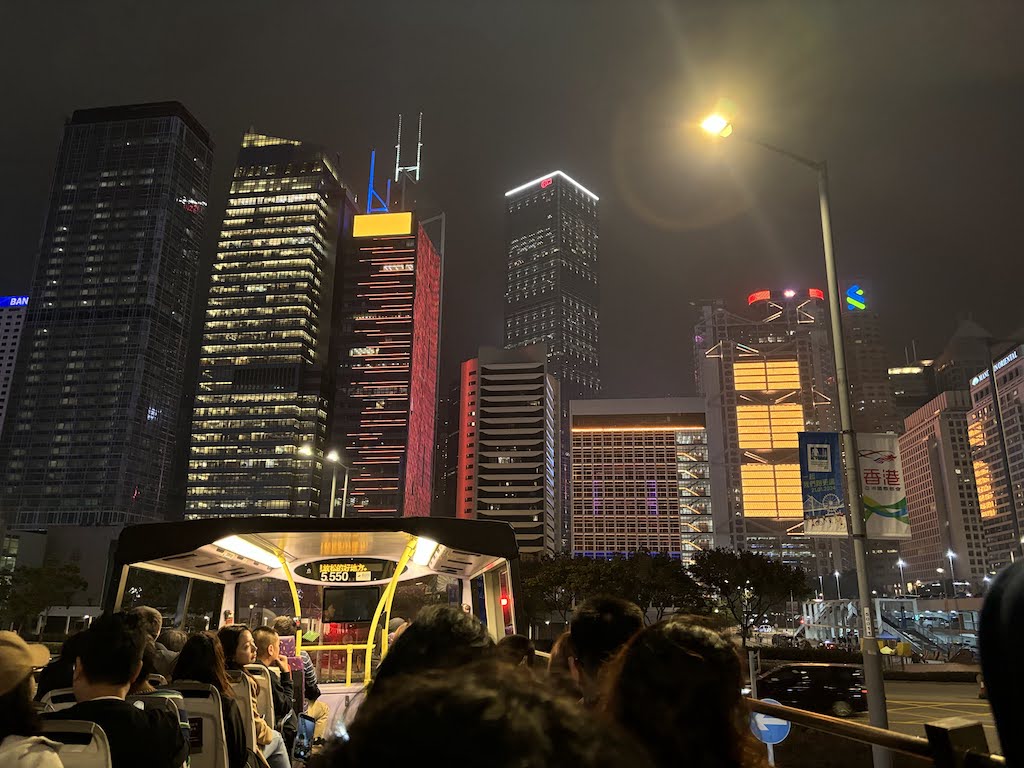 릭샤버스 H2K투어: 지금 홍콩관광청 이벤트로 야간 관광 버스를 20 HKD에 탈 수 있다. 할인 티켓 수량이 한정적이라 미리 예약해둬야 한다. 나는 7시 버스를 타려고 6시 50분쯤 갔는데 사람이 많아 1시간을 길에서 줄서서 기다린 후 다음 버스인 8시 버스를 타야했다. 오픈된 2층에 탔는데 버스가 달릴 땐 바람이 세져서 놀이기구를 타는 것 같은 스릴이 좀 있고 홍콩항 횡단 지하터널 지날 땐 (매우 나쁜 공기를 들이마시며) 다 같이 소리 지르는 재미도 있다. 20 HKD에 가만히 앉아 홍콩섬과 까오롱 반도의 야경을 즐길 수 있어 가성비가 훌륭하다. 난 피곤해서 종점까지 안 타고 숙소 (YMCA)앞인 침사추이 스타페리 피어에서 하차.