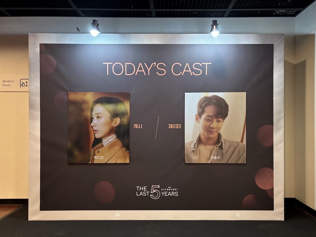 뮤지컬 라스트파이브이어스의 오리지널 캐스트 음반은 아마도 내가 가장 많이 들은 뮤지컬 음반일 것이다. 또한 너무나도 좋아하는 음반이기도 하다. 몇몇 곡들은 도입부만 들어도 눈가가 촉촉해지고, 몇몇 곡들은 듣고 있으면 막 흥이 난다. 이렇게 좋아하는 넘버들이 담긴 공연이지만 지금까지의 03년, 08년 국내 공연은 모두 내 기대에 못 미쳤다. 그런데 드디어 이번에 내가 기대했던 라스트파이브이어스를 만난 것이다.