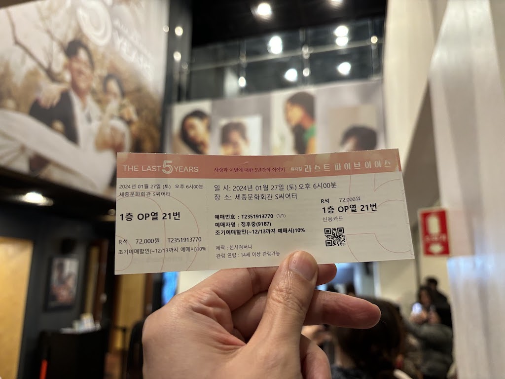 뮤지컬 라스트파이브이어스 The Last 5 Years의 국내 03년 초연, 08년 재연, 그리고 지금 공연 중인 작품을 다 봤는데 이번 공연에서야 이 작품을 완전히 즐겼단 생각이 든다.