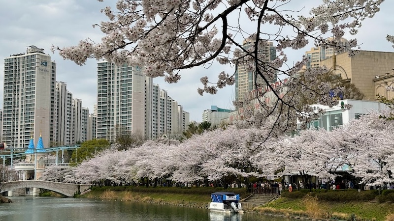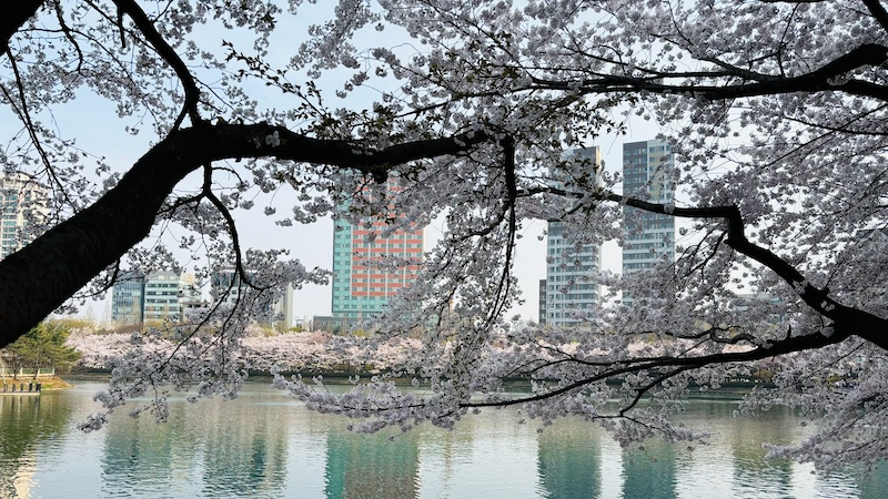 매년 봄에 찾아오는 석촌호수의 벚꽃이 피었다.
