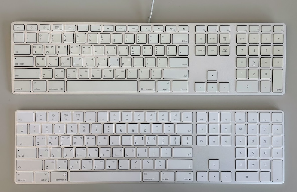 | 숫자패드 있음 | Apple Silicon이 장착된 Mac 모델용 Magic Keyboard (Touch ID/숫자 키패드 탑재) 209,000원 | Magic Keyboard w/Numeric Keypad 149,000원 |