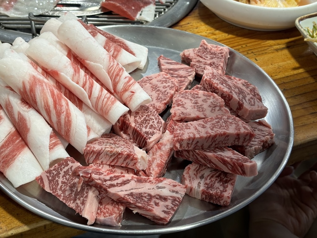 - 차돌배기 48,000원 (150g), 등심 58,000원 (150g). 차돌은 맛있지만 집에서 구워 먹을 때와의 갭이 크지 않았는데 등심이 기가 막혔다.