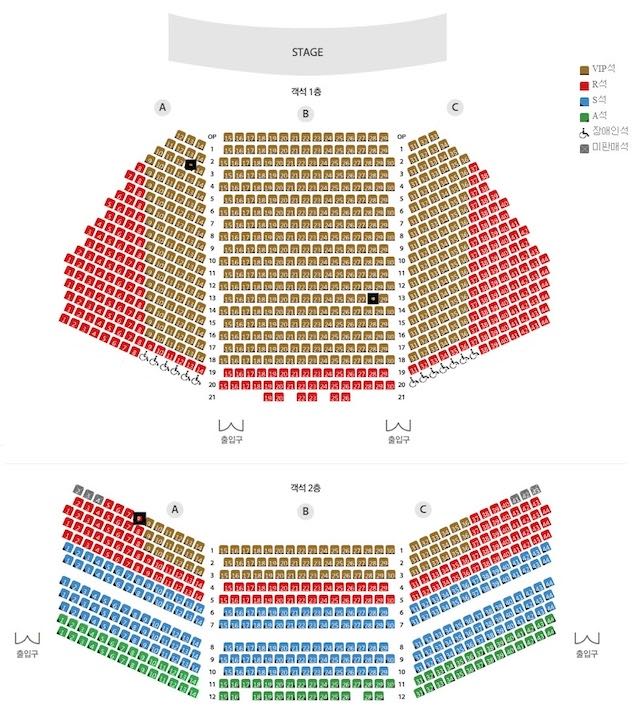 - 2층 1열 좌블 (R석): 예상 외로 좋았던 자리. 무대를 한 눈에 내려다볼 수 있다. 2층 1열의 안전바가 시야에 방해가 된다는 리뷰도 종종있는데 나는 키가 커서인지 전혀 방해가 되지 않았다. 무엇보다 앞 좌석에 방해받지 않는다는 점이 마음 편함.