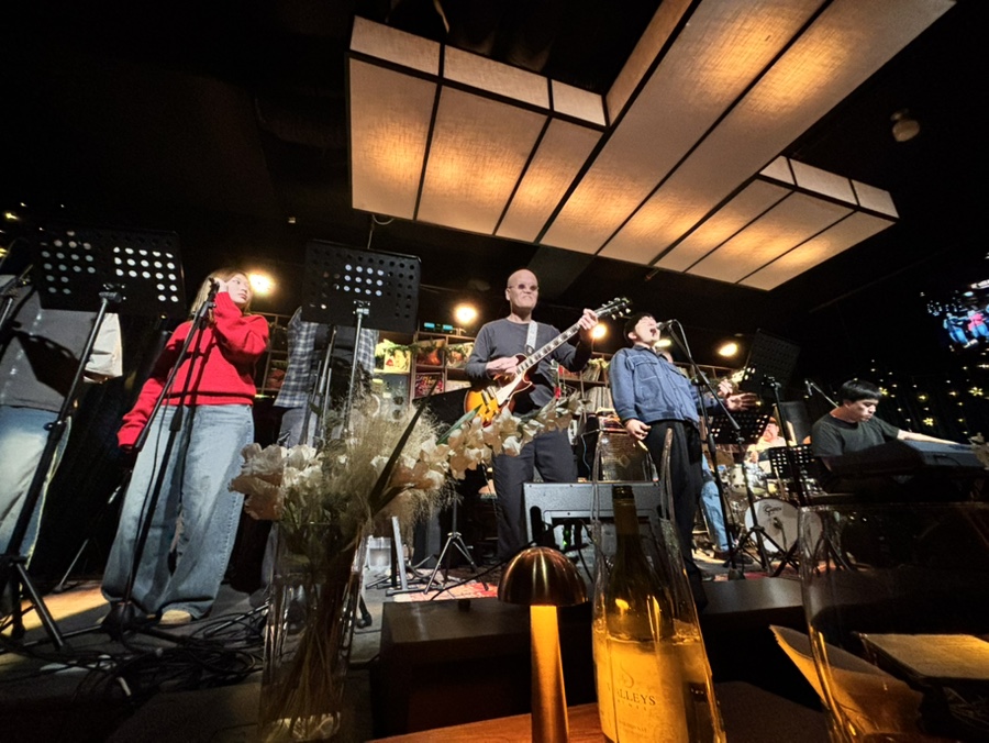 여기다 보컬이 네분 오셨는데 아마 한상원 교수가 재직하는 호원대 실용음악학부의 학생들로 보인다. 이날 공연 환경이 노래를 부르기에 그닥 좋지 않은 것 같았고 내가 보컬보다는 악기 연주곡을 더 좋아해서 차라리 보컬이 없는게 낫지 않았을까 생각했다. 게다가 바로 전날 뮤지컬 틱틱붐에서 김수하 배우의 Superbia를 듣고 간 터라 웬만한 보컬엔 별 느낌이 없었던 상태. 한상원 씨의 펑키한 기타 좋았고 키보드 조승연 씨의 열정적인 연주가 인상적.