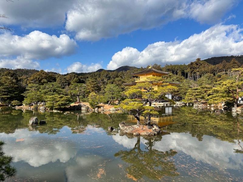 킨카쿠지 (금각사) 金閣寺: 금으로 포장한 사리전이 있는 절로 주변의 연못과 더불어 무척 아름다웠다. 날씨까지 좋으니 대충 찍어도 사진이 잘 나왔다. 가까이에서 보면 너무 번쩍여 멋이 좀 떨어진다. 사리전은 1950년 견습 승려의 방화에 의해 소실되었고 현재의 누각은 1955년 복원된 것.