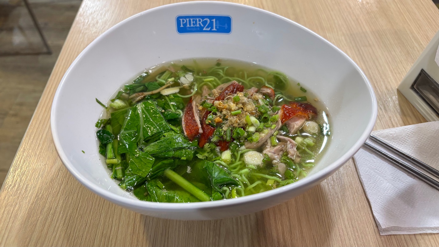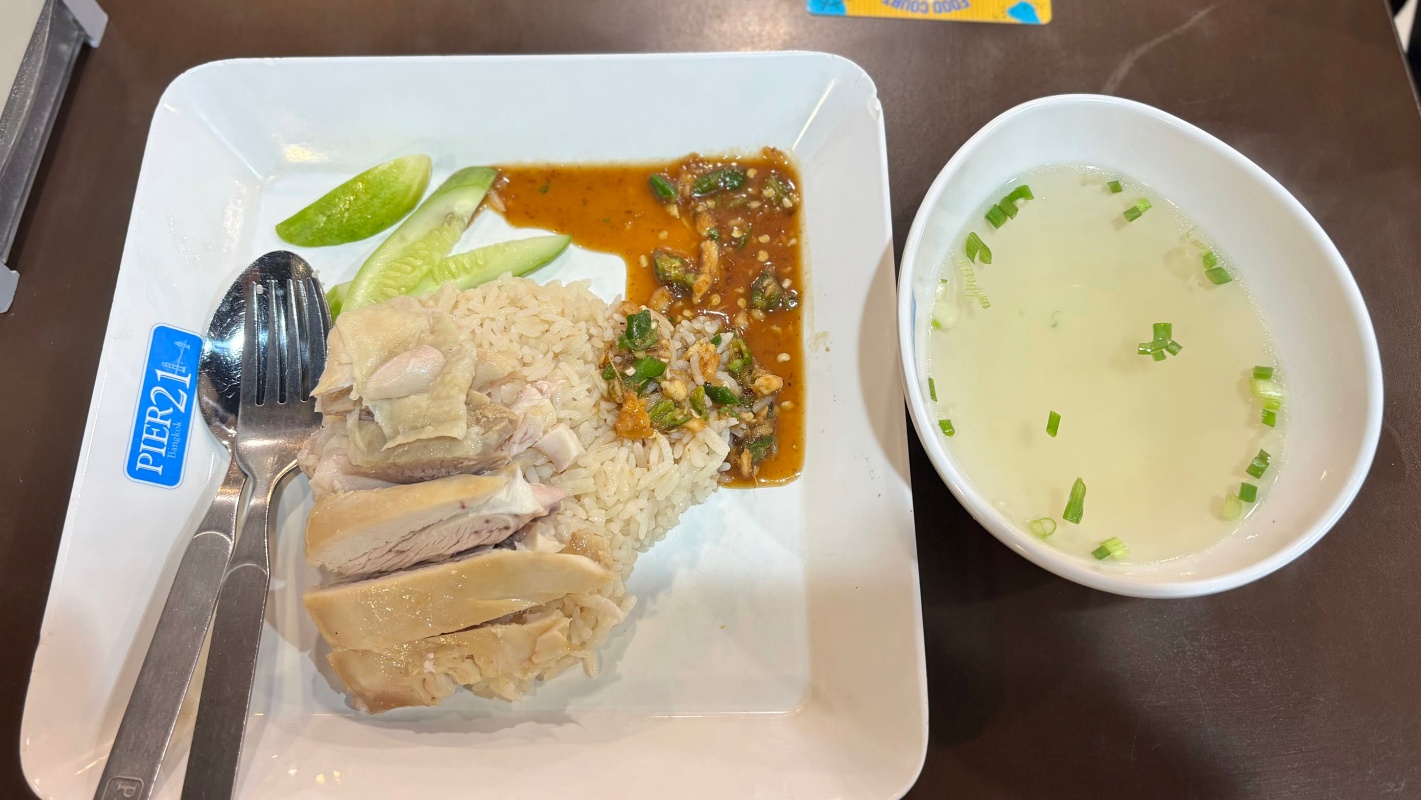 - 한국에서 먹기 힘든 음식 위주로 고르다보니 태국 음식보단 중식을 고르게 됐다. 거위 올라간 국수(35฿)를 퀵하게 먹은 후 해남식 치킨 라이스(32฿)를 먹었다. 양이 적은 편이라 혼자 여행하지만 다양하게 먹고 싶을 때 좋을 것 같다. 마무리로는 망고주스 (30฿).