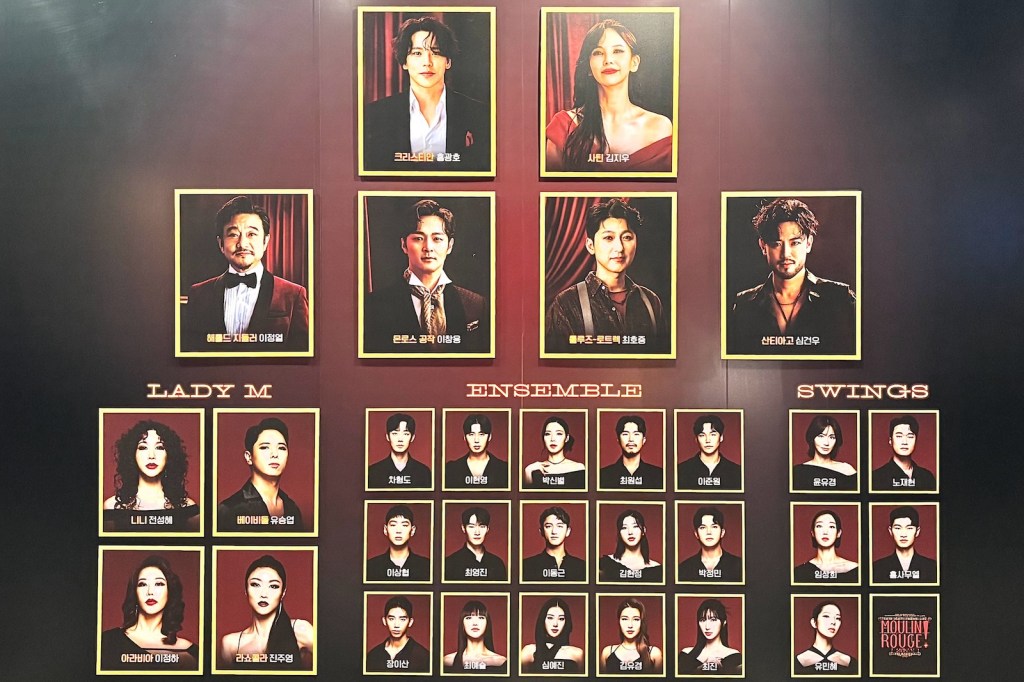 • 극장의 화려함은 그대로이다. 극장에 입장하는 사람들이 사진과 영상을 찍느라 복도에 멈춰서는 경우가 많아 어셔가 ‘멈추지 말고 계속 자리로 들어가세요’라고 말할 정도. 관객이 물랑루즈 극장에 들어와있는 느낌을 줄려고 노력한 것 같다. 그럼으로써 우리가 보는 공연도 물랑루즈의 극중 극을 보는 듯한 느낌을 주는 것.